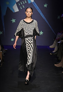 The collection is full of glamourous details which gives me the impression of space and stary nights. In fact, there comes the concept of "The Little Price"......The hair style is clean and neat with make-up focus on eyes - like the eyes of a clown.